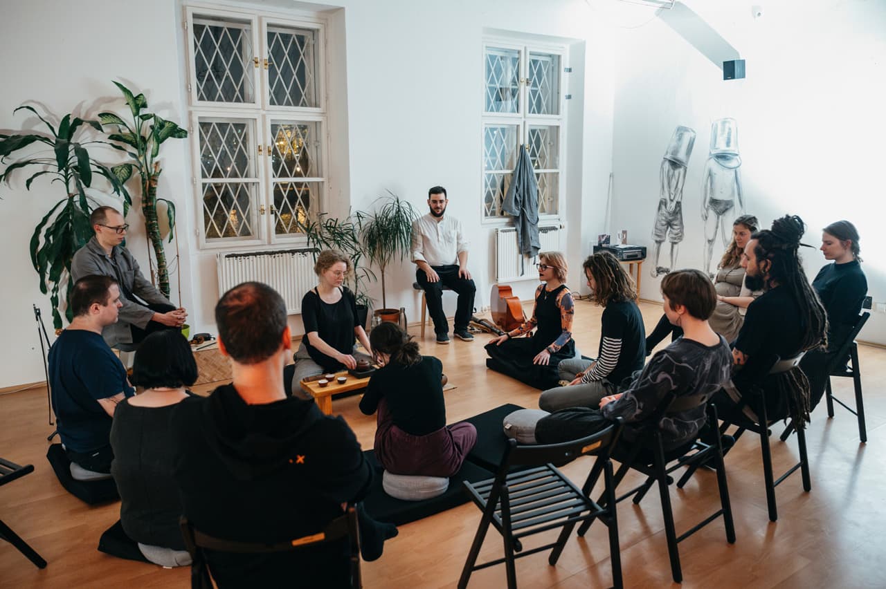 Sedět je performativní projekt, který vznikl ve spolupráci Prague Quiet Music Collective s čajovým studiem Meetea. Přináší nevšední zážitek, v němž se propojuje čínský čajový obřad gong fu cha s živou hudbou, a vrací se ke kořenům pití čaje jako kontemplativního rituálu v klasické čínské kultuře. Tyto obřady byly tradičně doprovázeny hrou na guqin — čínskou citeru s tichým, jemným zvukem určeným nikoli pro slavnosti, ale pro sólovou, meditativní hru. Právě tuto kvalitu soustředěného naslouchání a pomalého plynutí se projekt snaží zachytit a přenést do současného kontextu.